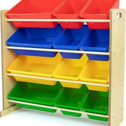 Basics Kids Toy Storage Organizer With 12 Plastic Bins, Natural Wood With Bright Bins, 10.9" D x 33.6" W x 31.1" H$29Woodbridge Township, NJ