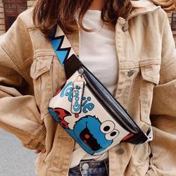 Cookie Monster Fanny pack pu leather waist crossbody bag cartoon blue white$45Palisades Park, NJ