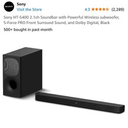 Sony HT-S400 2. 1ch Soundbar with Powerful Wireless subwoofer, S-Force PRO Front Surround Sound, and Dolby Digital, Black$100Piscataway, NJ