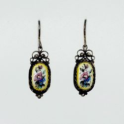 Vintage USSR Russian silver plated Hand Painted enamel earrings - GM1505$30Queens, NY