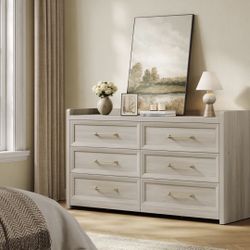 6 drawer dresser white and light wood with silver handles$210New York, NY
