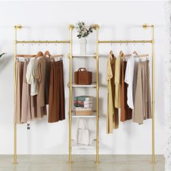 Industrial Pipe Gold Clothing Rack with Shelves, Retail Display Wall Mounted Storage Clothes Hanging Shelf Gold Pipeline Hanging Rod Steampunk Style, $144Cheektowaga, NY