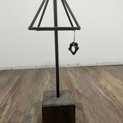 A Brandt Ranch Oak Vtg Rustic Wagon Wheel Hub Lamp & Burlap Drum Shade (#1930)$100Tn Of Tona, NY