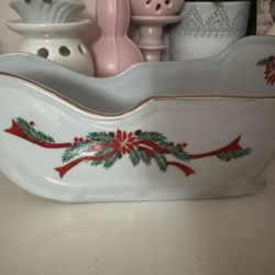 Tienshan Fine China Christmas Poinsettia Sleigh Dish$6Williamsville, NY