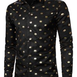 Men’s Large Button Up Fashion Graphic Black And Gold Crown Shirt $20Niagara Falls, NY