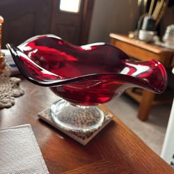 Ruby Red Glass Footed Pedestal Ruffled Edge Bowl$23Buffalo, NY