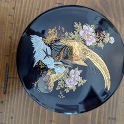 Vintage Imperial Kutani Cobalt Blue Enamel Gilded Porcelain Round Box