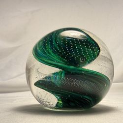 Signed Hand‐Blown Art Glass Paperweight — Green Swirl with Controlled Bubbles$39Williamsville, NY