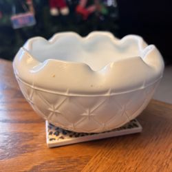 Vintage Indiana Milk Glass Duette Rose Bowl Diamond Quilt Crimped Ruffle Edge$13Buffalo, NY