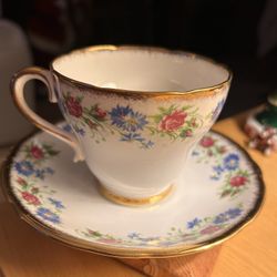 Salisbury Pink Rose Blue Cornflower English Bone China Teacup and Saucer$15Buffalo, NY