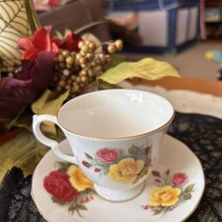 Queen Anne Bone China Cup and Saucer with Red, Pink and Yellow Roses$12North Tonawanda, NY