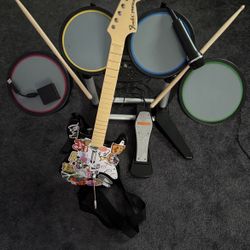 PlayStation rock band set with rare guitar dongle works perfectly kids just don’t play it$350Tn Of Tona, NY