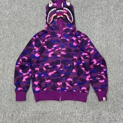 This is a BAPE Color Camo Shark Full Zip Hoodie in purple. $145Buffalo, NY