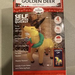NEW Inflatable Golden Deer Wreath Antlers 4FT Light Up Outdoor Indoor Holiday$25Hamburg, NY