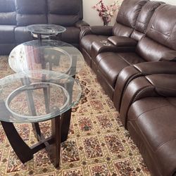 “Brown Leather Reclining Sofa & Loveseat Set w/ Cupholders + Tables”$650Buffalo, NY