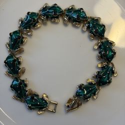 Vintage Green Enamel and Gold Tone Frog Link Statement Bracelet 7.5"$39Staatsburg, NY