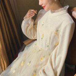 Literary autumn and winter embroidery mesh high waist dress$139Stanfordville, NY