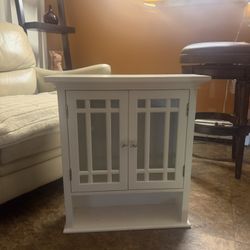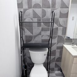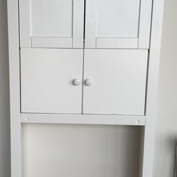 White wooden cabinet with shelves and doors above the toilet in good condition$45New York, NY