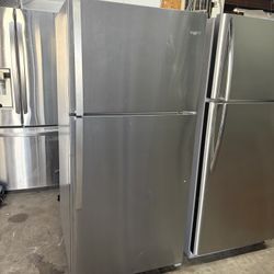 GE 21.9 Cu. Ft. Top Freezer Refrigerator in Fingerprint Resistant Stainless Steel, Garage Ready. 99% look like New . Inside very clean.$600Queens, NY