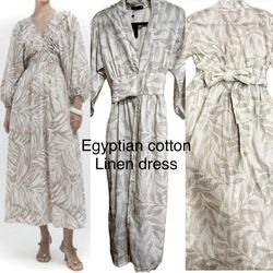 Mi TARA convertible wrap earthy leaf Bohemian Egyptian cotton linen midi Dress$69Staten Island, NY
