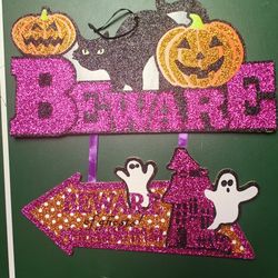 Halloween Wall Decor PurpleGlitter BEWARE w/BlackCat/Pumpkin/Ghost/HauntedHouse $5Wayne, NJ