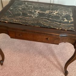 Antique Coffee / Accent / Side Table Black Marble Insert Solid Wood 2 Drawers French Style$225Garden City P, NY