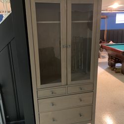 Beige armoire-style cabinet With Glass Doors$300Queens, NY