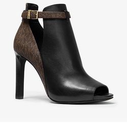 Michael Kors Black and Brown Size 8 Metallic Gold Textured T-Strap Heels$100Queens, NY