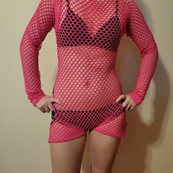 Hot Pink Fishnet Bodysuit with Cutouts, size S (0569)$10Queens, NY