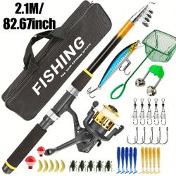 2pcs Fishing Gear Set/2 Telescopic Fishing Rods/2 Spinning Reels/1 Fishing Gear Bag/1 Box of Bait, Hooks, Sequins And Accessories$47Edison, NJ