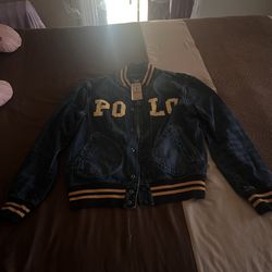 Ralph Lauren Mens Denim Baseball Varsity Letterman Polo Logo Jean Jacket$200Westfield, NJ