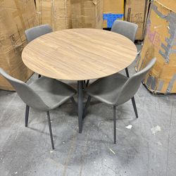 43.3 Inch Round Dining Table Set for 4, Modern Small Kitchen Coffee Set for Dining Room Kitchen Apartment (Walnut Table + 4 Grey Chairs)$300Union, NJ