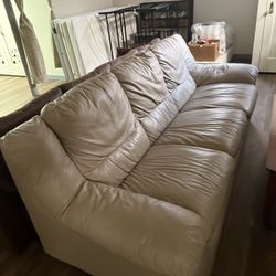 Brown Leather Sofa & Cream Chair$200Grnd Vw Hudsn, NY