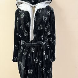 New Ardene Black Cat Print Plush Hooded Robe with Fluffy Lining Size S/M$30Montebello, NY