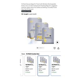 Brand new 15-Pack Vacuum Bags for Travel with Wireless Rechargeable Pump, Carry-on Size Compression Packing Bags for Luggage & Suitcase, Space Saver f$23Queens, NY