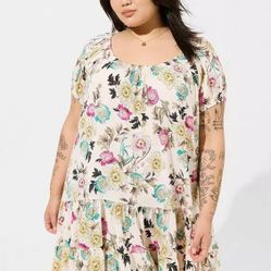 Floral Short Puff Sleeve A-Line Dress Rayon Multicolor$69South Burlington, VT