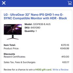 LG - UltraGear 32” 1-ms$210Brooklyn, NY