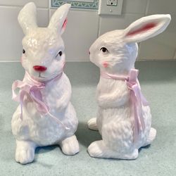 2 Vtg. 8” Tall Porcelain Easter Bunny Figurines Holiday / Springtime Decor Centerpieces$25Garden City P, NY