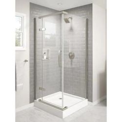 Classic 36 in. W x 76 in. H Square Sliding Frameless Corner Shower Enclosure in Stainless