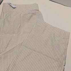 Old Navy Linen Straight Pants Women Petite Beige White Striped Comfort Waistband$22White Plains, NY