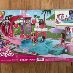 Barbie Dream Pool Playset with Slide & Bubbling Hot Tub, 20+ Accessories Including Pet, Floaties & More - New$30E Atlantc Bch, NY