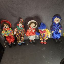 Lot of 5 Porcelain Clown Dolls with Assorted Outfits, Fabric Accents$40Bloomfield, NJ