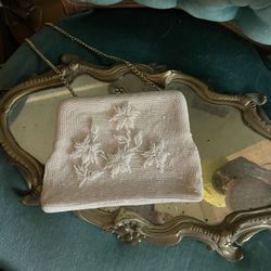 Vintage Harry Levine HL 1950s Cream Clutch Purse with Gold Tone Metal Clasp/Closure. $30Bronxville, NY