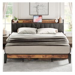 New in box Led Bed Frame Queen Size with USB Charging Station, Industrial Platform Bed Frame with Farmhouse Barn Door Headboard, Strong Metal Slats Su$130Union, NJ