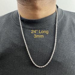 Stainless Steel 3mm Twisted Rope Chain Necklace Lobster Clasp 24” Long Chain Necklace For Men Women - CHN$28Queens, NY