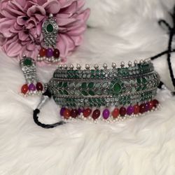 Gorgeous Multi Stone Choker Necklace With 9.25 Silver Print$59New York, NY