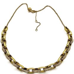 Ann Taylor Necklace 1990s Antique Gold Tone Clear Rhinestones Pave Link Chain Adjustable Fashion Choker$29Ossining, NY