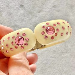 Vtg. 1940s-50s Celluloid Cream Pink Rhinestones Clamper Weiss Bracelet Costume Jewelry $85Garden City P, NY