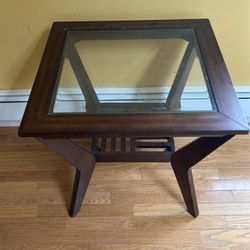Vintage End Table With Glass Dark Brown$50Brooklyn, NY