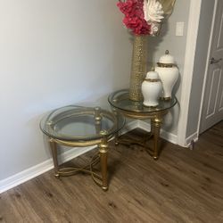3 Piece Livingroom Table Set - 2 End Tables 1 Coffee Table - Gold With Glass Top **Local Pick Up Only**$225North Babylon, NY